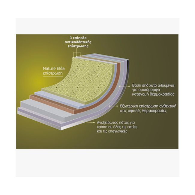 Με 7 στρώσεις για εξαιρετική αντοχή και τριπλή αντικολλητική επίστρωση Natura Elea από φυσικά συστατικά.