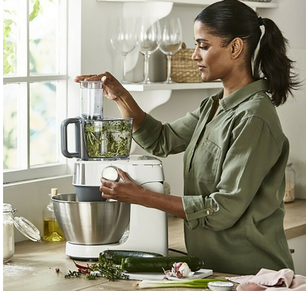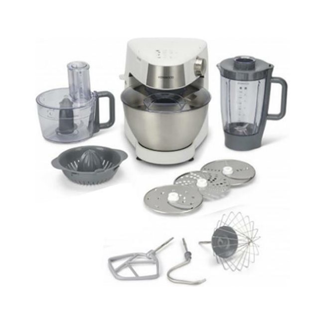 Περιλαμβάνει: Αναδευτήρας σχήματος 'K,' Αναδευτήρας ζύμης, Αναδευτήρας μαρέγκας, Μπλέντερ, Κόφτης/Τρίφτης με 3 δίσκους κοπής, Λεμονοστίφτης
