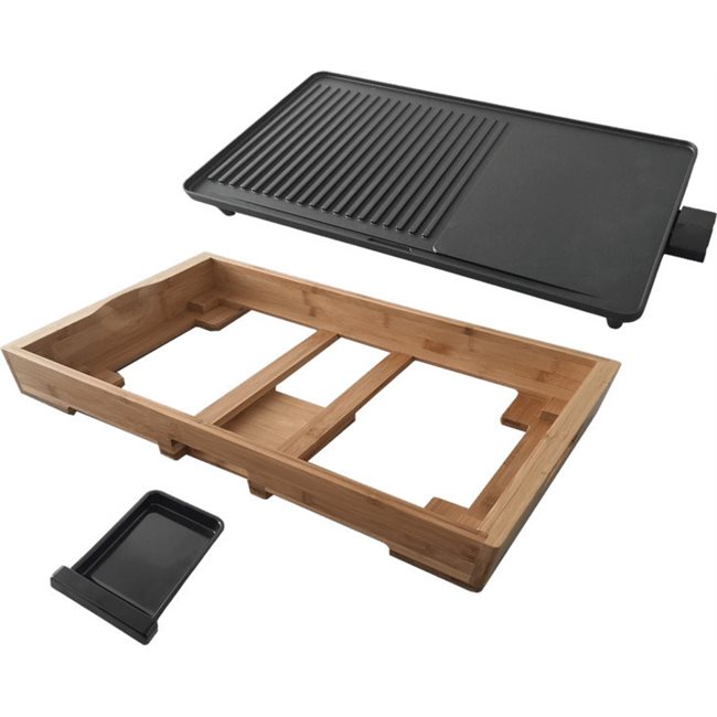 Επιφάνεια ψησίματος μοιρασμένη σε λεία (για ψάρι) και με αυλακώσεις (για κρέας και λαχανικά)