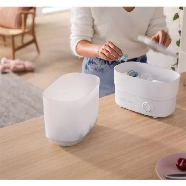 Ο αποστειρωτής μπορεί να χρησιμοποιηθεί για μπιμπερό με κανονικό και πλατύ στόμιο. Χωράει επίσης και άλλα βρεφικά προϊόντα, όπως θήλαστρα και αξεσουάρ.