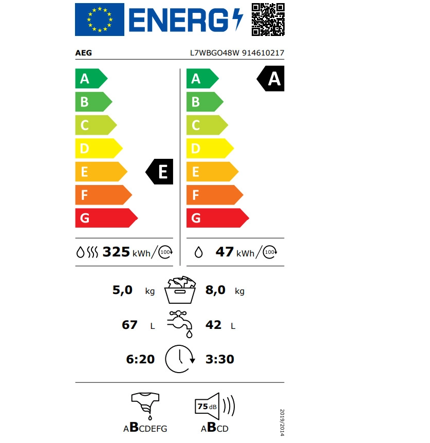 Προγράμματα πλύσης : Eco 40-60, Βαμβακερά, Συνθετικά, Ευαίσθητα, Μάλλινα/Πλύσιμο στο χέρι, Outdoor, Quick 20 Wash&Dry 60, Ατμός, Ξέβγαλμα, Στύψιμο / Άντληση