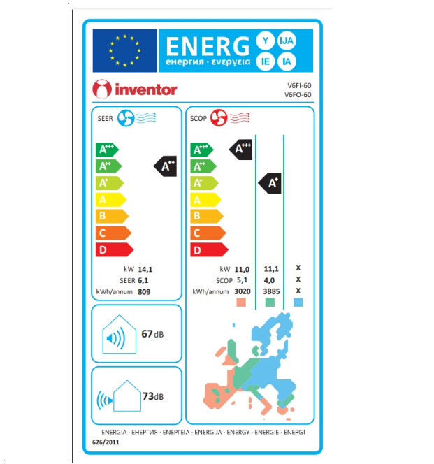 Ηχητική Ισχύς - Εσωτερική/ Εξωτερική Μονάδα 67/73 dB (A)