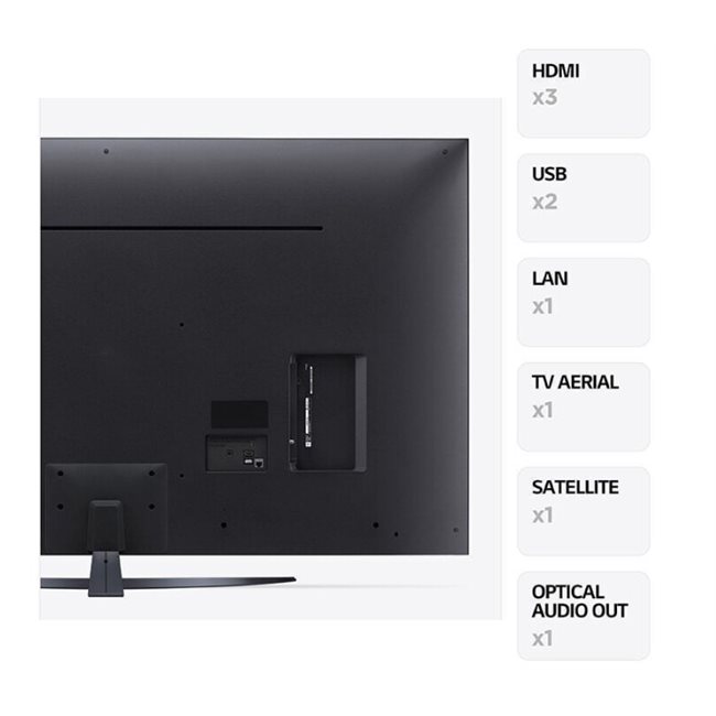 Λειτουργίες Smart : webOS 23, ThinQ, Έξυπνη Αναγνώριση Φωνής, Magic Remote Control, Υποστηρίζει το Apple Airplay 2, Smartphone Remote App (LG ThinQ), Sports Alert, Family Settings, Συμβατό με κάμερα USB