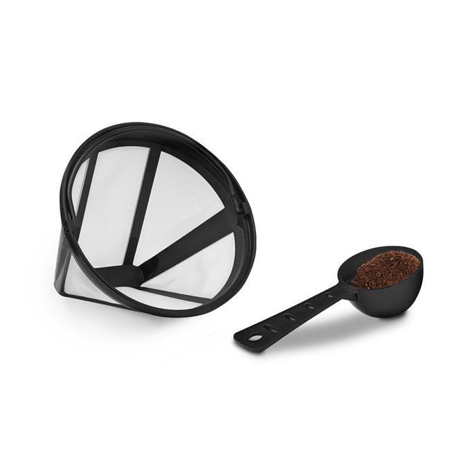 Μαύρη καφετιέρα φίλτρου με wooden λεπτομέρειες