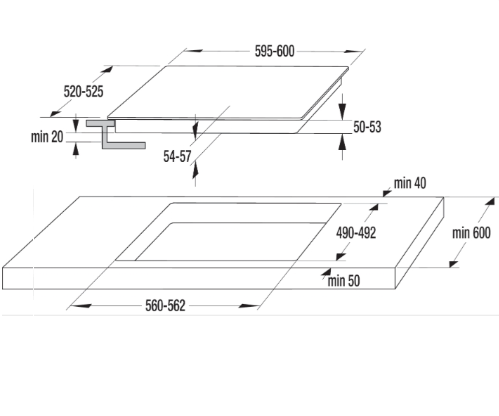 Καθαρές διαστάσεις (πλάτος x ύψος x βάθος): 595 x 595 x 560 mm