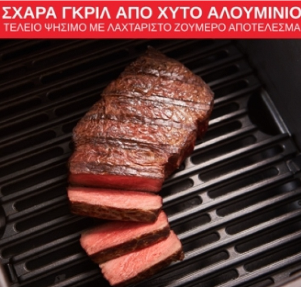 Η σχάρα από χυτοπρεσαριστό αλουμίνιο εγγυάται μαλακό, ζουμερό κρέας ή λαχανικά ψημένα στην εντέλεια από την άνεση της κουζίνας σας.
