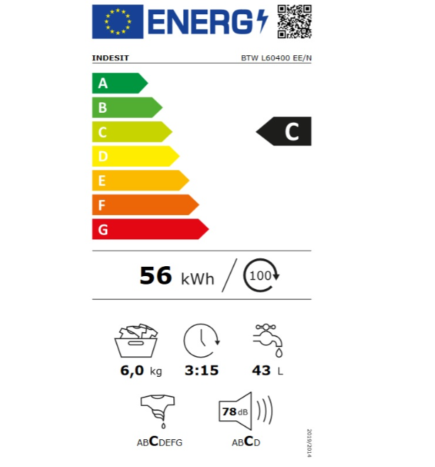 Κατανάλωση ενέργειας 56 kWh / 100 κύκλους