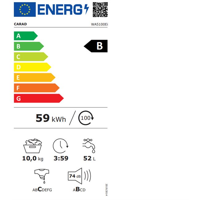 Κατανάλωση ενέργειας 100 τυπικών κύκλων πλύσης 59kWh