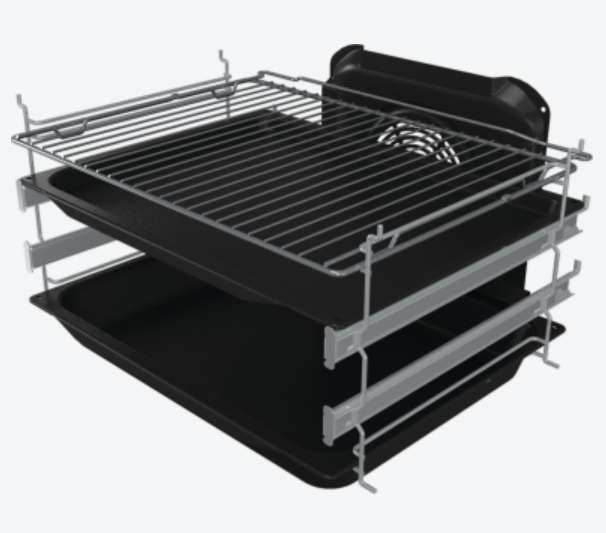 Εξοπλισμός:1 ρηχό εμαγιέ ταψί, 1 βαθύ ταψί, 1 σχάρα ψησταριάς Premium, μερικώς επεκτεινόμενοι τηλεσκοπικοί οδηγοί σε δύο επίπεδα