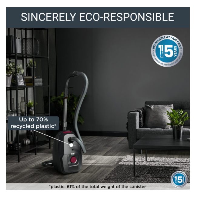 Δεν θέλετε να διαλέξετε ανάμεσα στην υψηλή απόδοση και στη μείωση του αντικτύπου σας στο περιβάλλον; Τότε η Green Force Max είναι η ιδανική λύση για εσάς! Αυτή η ισχυρή ηλεκτρική σκούπα προσφέρει άψογα καθαριστικά αποτελέσματα με μοτέρ χαμηλής κατανάλωσης* έως 900 W και φιλτράρισμα κατηγορίας HEPA (φιλτράρισμα τουλάχιστον σε ποσοστό 99,98%) για καθαρή ατμόσφαιρα. Αυτή η ηλεκτρική σκούπα κατασκευάζεται στη Γαλλία με έως και 70% ανακυκλωμένο πλαστικό*. Χάρη στην πολύ μεγάλη ακτίνα σκουπίσματος 12 μέτρων, είναι ιδανική για το σκούπισμα μεγάλων επιφανειών χωρίς να χρειάζεται να αποσυνδεθεί από την πρίζα.