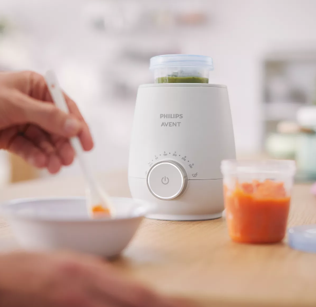 Ζεσταίνει δοχεία βρεφικής τροφής αλλά και γάλα : Όταν το μωρό σας είναι έτοιμο να μεταβεί στις στερεές τροφές, μπορείτε να χρησιμοποιείτε τον θερμαντήρα μπιμπερό για την απόψυξη και το ζέσταμα δοχείων βρεφικής τροφής.