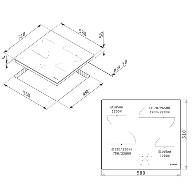 Κεραμική εστία με 6 ζώνες μαγειρέματος