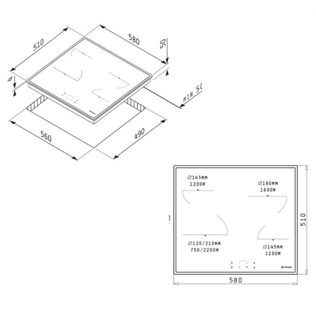 Aυτόνομη Κεραμική εστία με 5 ζώνες μαγειρέματος