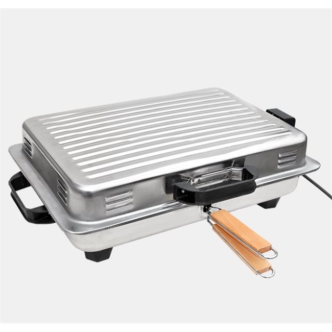 Διπλή χρωμιωμένη σχάρα με σπαστές χειρολαβές για εύκολη αποθήκευση.