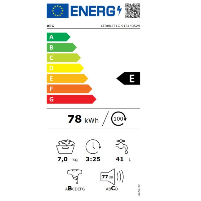 Σταθμισμένη κατανάλωση ενέργειας σε kWh ανά 100 κύκλους πλύσης του προγράμματος eco 40-60 (ΕΕ 2017/1369): 78