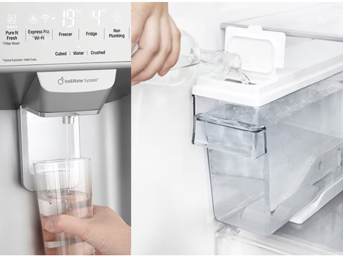 Χωρίς υδραυλική εγκατάσταση : γεμίζουμε το παγούρι που έχει εσωτερικά. Αυτό επιτρέπει την τοποθέτηση του ψυγείου οπουδήποτε στην κουζίνα σας, χωρίς να υπάρχει ανάγκη αντικατάστασης του φίλτρου νερού.