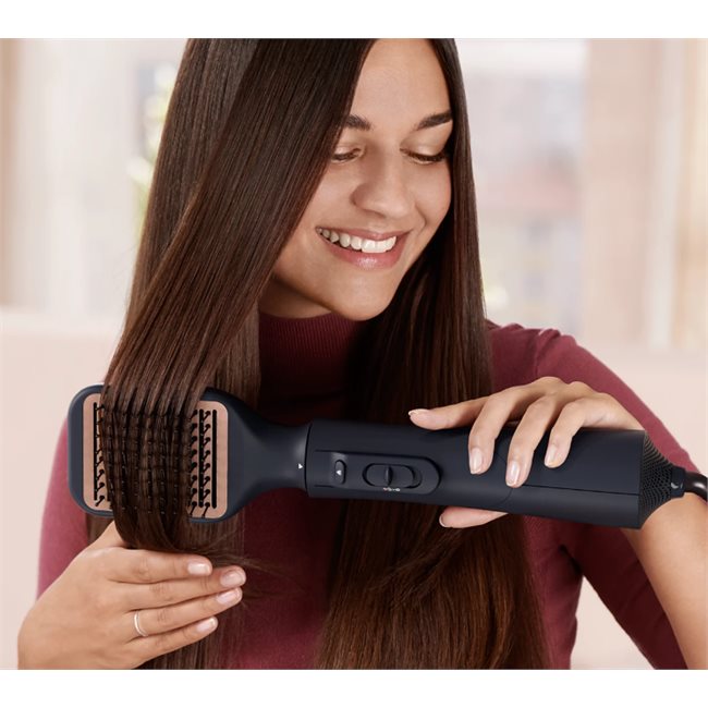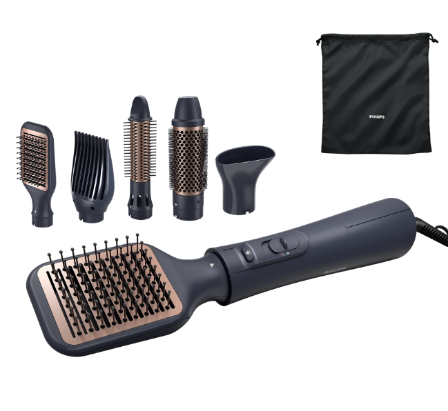 Philips Air Styler 5000 για εύκολα χτενίσματα κάθε μέρα. Ο θερμός αέρας κατανέμεται ομοιόμορφα στη βούρτσα, ενώ η φροντίδα με ιόντα προσφέρει επιπλέον λάμψη στα μαλλιά σας.