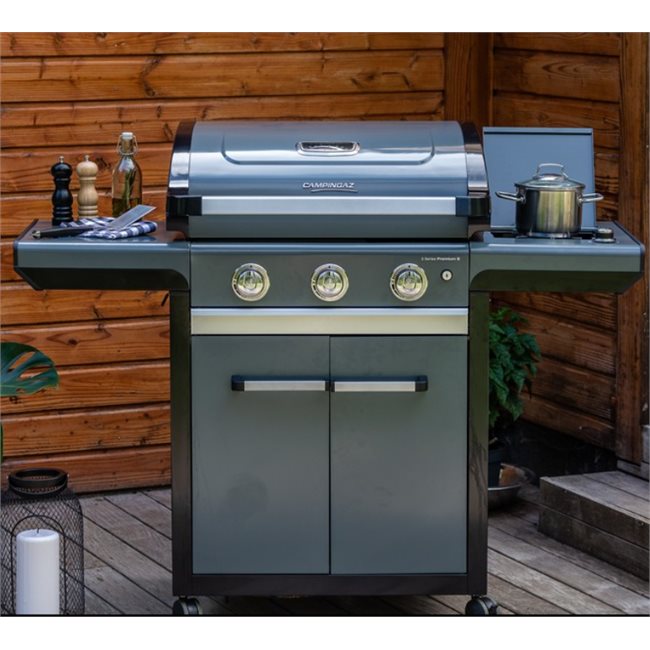 Με τις μεγάλες μαντεμένιες σχάρες η ψησταριά 3 Series Premium S είναι ιδανική για την προετοιμασία πολλών διαφορετικών πιάτων. Η δυνατή πλευρική εστία σας βοηθά να προετοιμάσετε συνοδευτικά για τα ψητά σας.