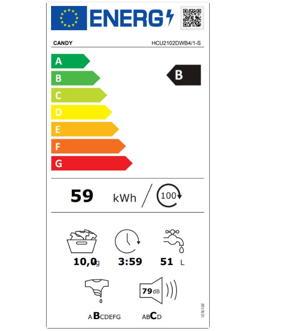 Μέση Κατανάλωση ενέργειας (100 κύκλοι, ECO 40-60): 59