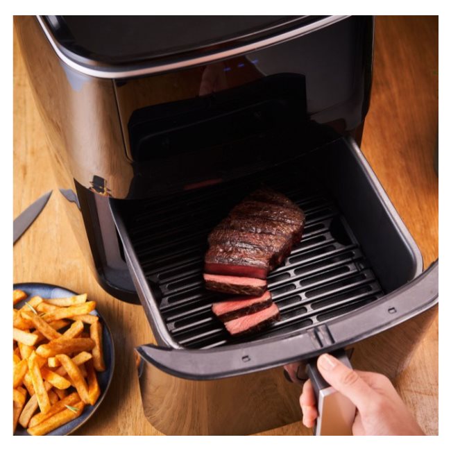 Αυτόματα Προγράμματα 7 : Πέντε κλασικά προγράμματα (τηγανητές πατάτες, κοτομπουκιές, κοτόπουλο, λαχανικά, επιδόρπιο) και δύο έξυπνα που συνδυάζονται αυτόματα (ψάρι, ψητό κρέας).