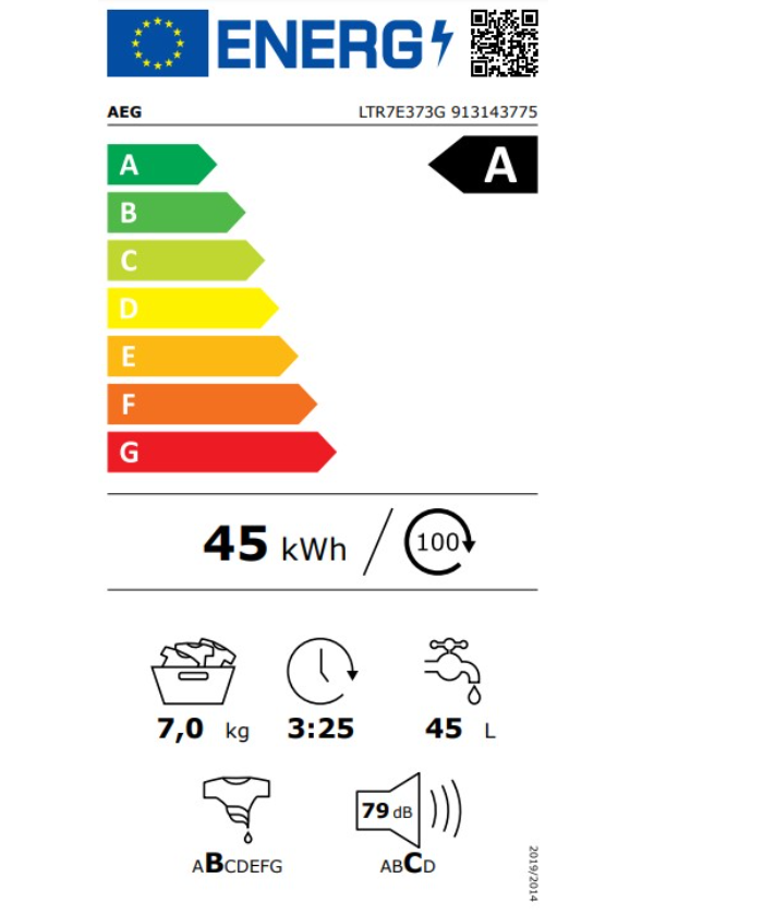Κατανάλωση ενέργειας: 45 kWh / 100 κύκλους