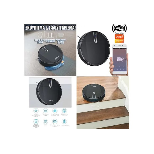 Η ρομποτική σκούπα Telco με λειτουργία σφουγγαρίσματος προσφέρει πρακτικό και αποδοτικό καθαρισμό, συνδυάζοντας ισχυρή απορροφητικότητα, τεχνολογία αισθητήρων και συνδεσιμότητα Wi-Fi, ώστε να ανταποκρίνεται στις ανάγκες της σύγχρονης κατοικίας. Με απορροφητική ισχύ 3200 Pa και χαμηλό επίπεδο θορύβου 65 dB, εξασφαλίζει αποτελεσματική απομάκρυνση σκόνης και ρύπων από σκληρά δάπεδα και χαλιά, χωρίς να ενοχλεί την καθημερινή ζωή.