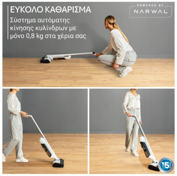 Η τεχνολογία ενεργού πλυσίματος και η αυτόματη περιστροφή κυλίνδρων προσφέρουν άμεσο και βαθύ καθαρισμό, ιδανικό για σκληρά δάπεδα.