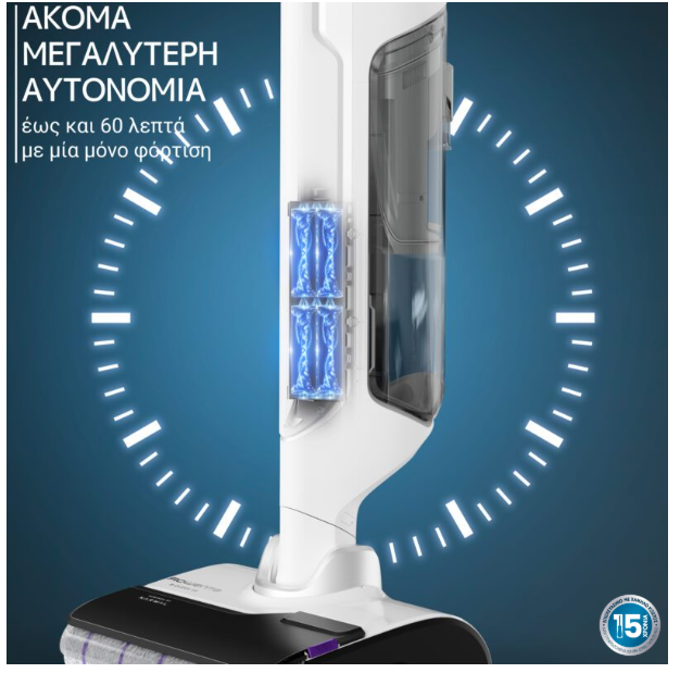 Η αυτονομία φτάνει έως και 60 λεπτά, καλύπτοντας πάνω από 400 τ.μ. με μία φόρτιση.