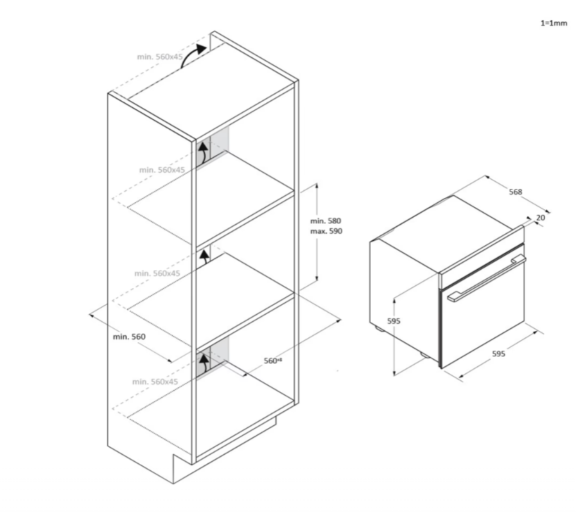 Κατάλληλος για εντοιχισμό άνω πάγκου, χωρίς εστίες.