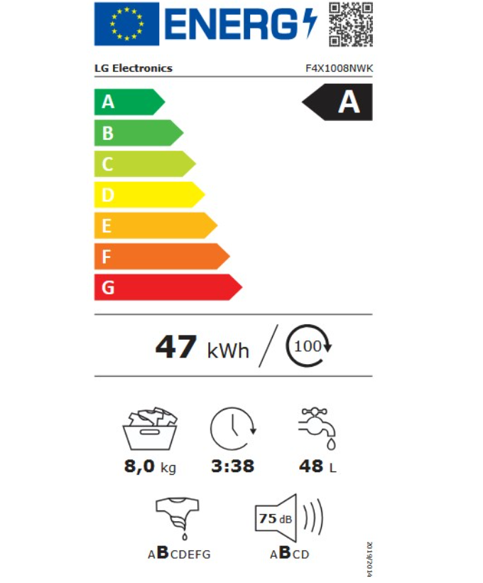 Κατανάλωση ενέργειας 48 kWh ανά 100 κύκλους