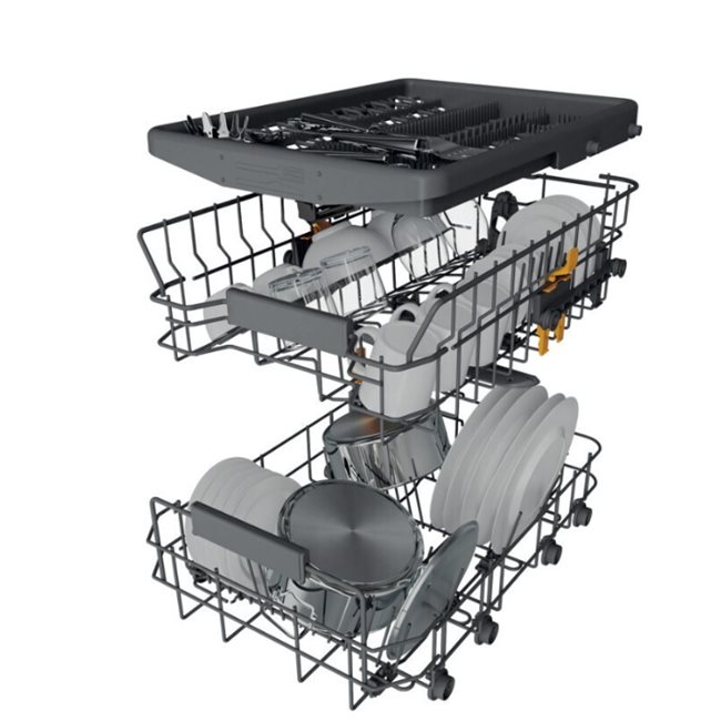 Διαθέτει εννέα προγράμματα, μεταξύ των οποίων Eco 50 °C, 6th Sense, Intensiv 65 °C, Silent 50 °C και Quick 30, για ευελιξία στην καθημερινή χρήση. Το τρίτο καλάθι FlexiSpace και το ρυθμιζόμενο επάνω καλάθι IBIZA προσφέρουν προσαρμοστικότητα και εργονομία στη φόρτωση.