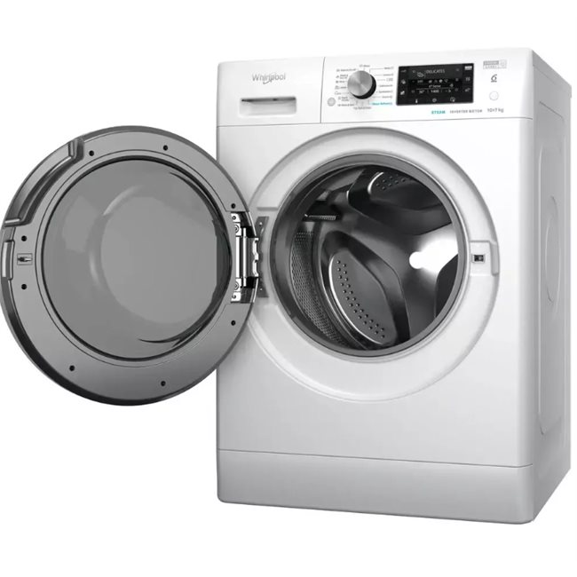Το Whirlpool FFWDD 107426 BSV EE συνδυάζει πλυντήριο και στεγνωτήριο σε μία συσκευή, προσφέροντας πρακτικότητα και εξοικονόμηση χώρου χωρίς συμβιβασμούς στην απόδοση. Με χωρητικότητα πλύσης 10kg και στεγνώματος 7kg, καλύπτει άνετα τις ανάγκες μιας οικογένειας, ενώ οι 1351 στροφές ανά λεπτό εξασφαλίζουν αποτελεσματικό στύψιμο.