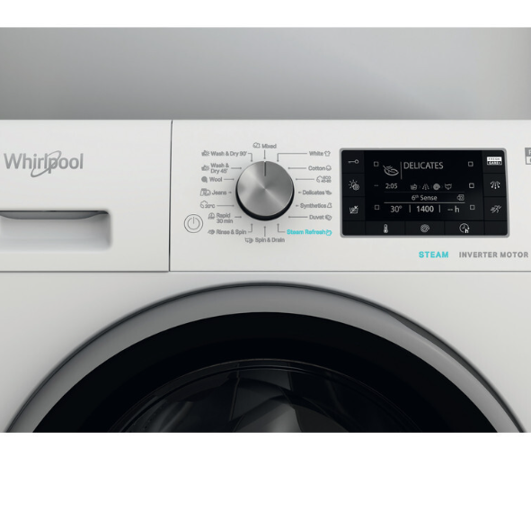 Χάρη στην τεχνολογία 6ης Αίσθησης, η συσκευή προσαρμόζει αυτόματα τις παραμέτρους πλύσης και στεγνώματος ανάλογα με το φορτίο, προσφέροντας εξοικονόμηση ενέργειας και απόλυτη φροντίδα στα υφάσματα. Το σύστημα SteamCare χρησιμοποιεί τη φυσική δύναμη του ατμού για να μειώσει το τσαλάκωμα, να μαλακώσει τις ίνες και να αναζωογονήσει τα ρούχα, αποτρέποντας τη δημιουργία οσμών.