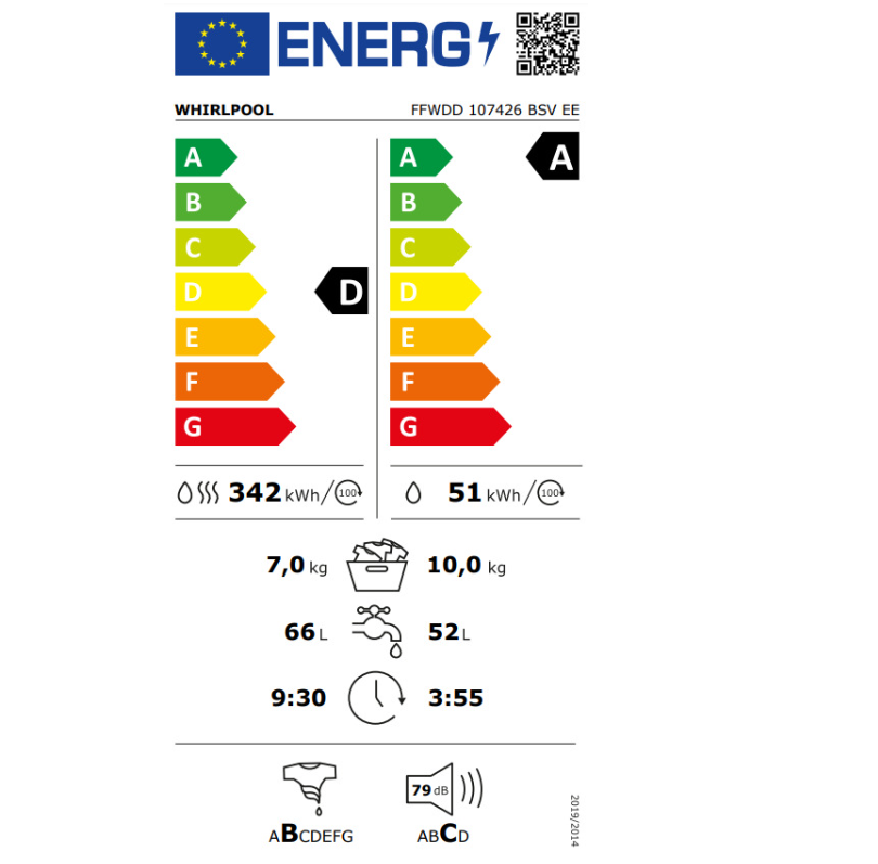 Η κατανάλωση ενέργειας φτάνει τις 51 kWh ανά 100 κύκλους πλύσης, με κατανάλωση νερού 66 λίτρα ανά πλήρη κύκλο. Ο θόρυβος κατά το στύψιμο φτάνει τα 79 dB, ενώ το μοτέρ 1850W εγγυάται αξιόπιστη απόδοση.