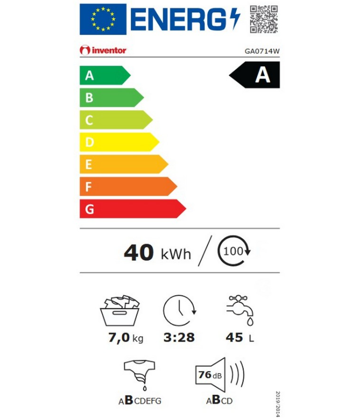 Πλυντήριο ρούχων 7 kg με ενεργειακή κλάση A-10% και χαμηλή κατανάλωση ενέργειας σε σχέση με τις συσκευές κατηγορίας Α.