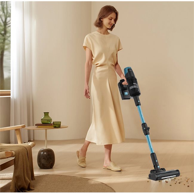 Προσφέρει 4 ρυθμίσεις λειτουργίας (Auto, Eco, Medium, Boost) και λειτουργεί ως stick ή φορητό σκουπάκι χειρός για καθαρισμό επιφανειών, καναπέδων ή αυτοκινήτου.