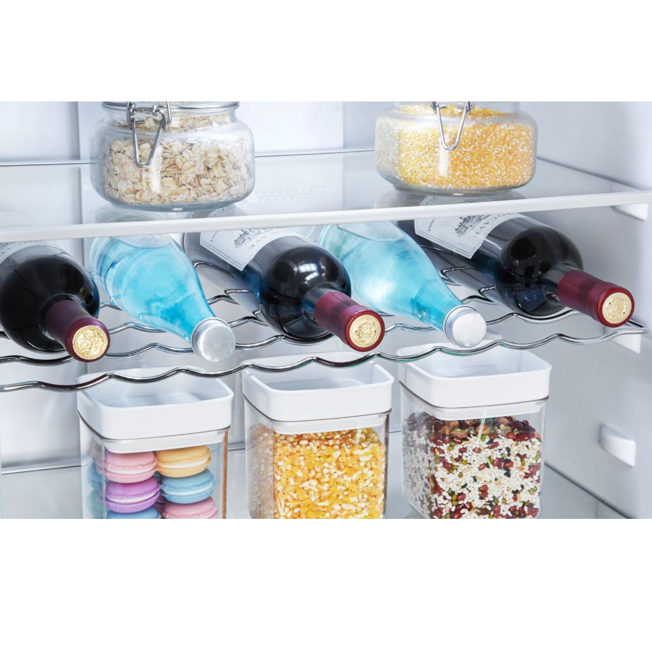 Διαθέτει μεταλλική θήκη για μπουκάλια, αναστρέψιμη πόρτα για ευελιξία στην τοποθέτηση και σχεδιασμό βάθους πάγκου, ώστε να εναρμονίζεται αισθητικά με την κουζίνα και να εξοικονομεί χώρο.