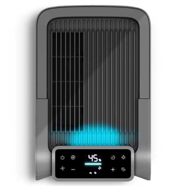 Διαθέτει ιονιστή για καθαρό αέρα, φίλτρο τριπλής δράσης για συγκράτηση σκόνης και αλλεργιογόνων και φωτεινή ένδειξη υγρασίας για άμεση ενημέρωση των συνθηκών στο χώρο.