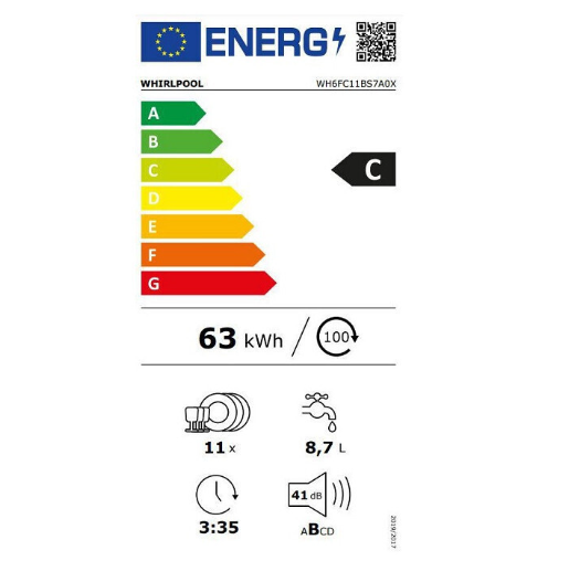 Το Whirlpool WH6FC11BS7A0X είναι η ιδανική επιλογή για όσους θέλουν ένα αποδοτικό, αθόρυβο και καλαίσθητο πλυντήριο πιάτων, με λειτουργίες που προσαρμόζονται στις ανάγκες της σύγχρονης κουζίνας.