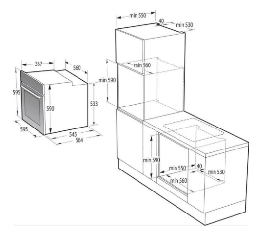 Οι διαστάσεις niche είναι 56–56.4 x 59–60 x 55 cm.