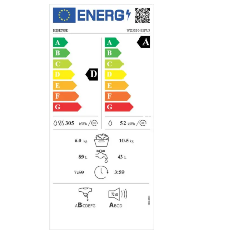 Η ενεργειακή κλάση είναι A για την πλύση και D για το στεγνωτήριο.