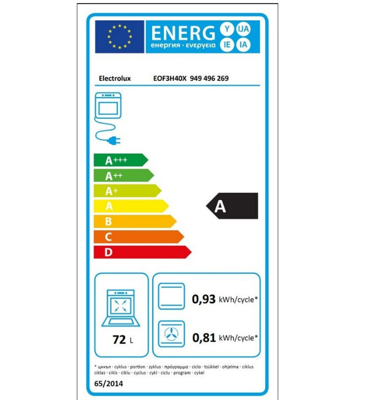 Εντοιχιζόμενος φούρνος Electrolux EOF3H40X με χωρητικότητα 72 λίτρων και πολυλειτουργικό σύστημα ψησίματος.