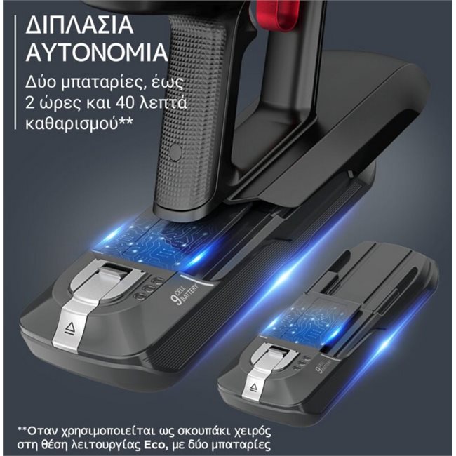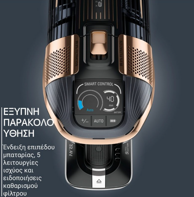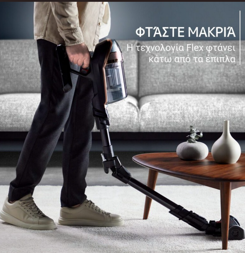 Η Rowenta X-Force Flex 15.60 προσφέρει εξαιρετικά υψηλή απόδοση καθαρισμού με ισχύ 550 W και απορροφητική δύναμη 245 Air Watts. Διαθέτει δύο αφαιρούμενες μπαταρίες για συνολική αυτονομία έως 1 ώρα και 20 λεπτά x 2 φορές, με χρόνο φόρτισης 3 ώρες. Η τεχνολογία Flex διευκολύνει το καθάρισμα κάτω από έπιπλα χωρίς σκύψιμο, ενώ η αυτόματη προσαρμογή της ισχύος αναρρόφησης βελτιστοποιεί την απόδοση σε κάθε τύπο δαπέδου. Η έξυπνη οθόνη LED επιτρέπει έλεγχο πέντε βαθμίδων ισχύος, ένδειξη μπαταρίας και ειδοποίηση καθαρισμού φίλτρου. Το ενσωματωμένο εξάρτημα σφουγγαρίσματος επιτρέπει ταυτόχρονο σκούπισμα και σφουγγάρισμα. Η συσκευή είναι ιδανική για σπίτια με κατοικίδια χάρη στο εξάρτημα Animal Turbo.