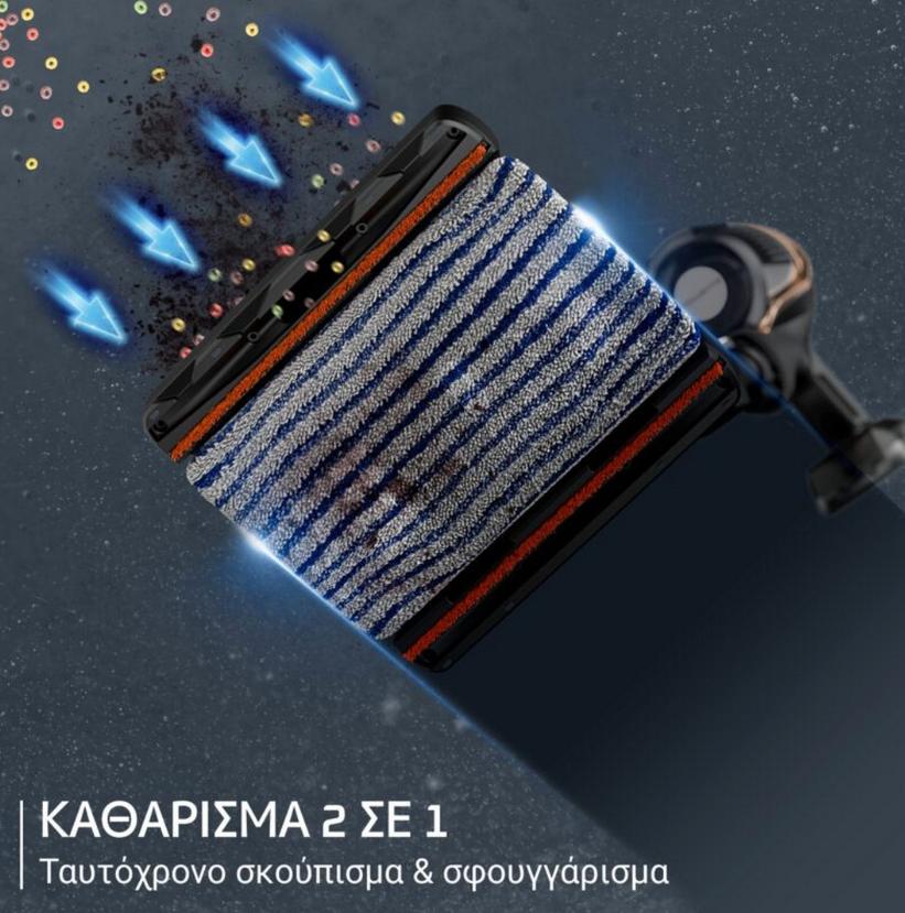 Αξεσουάρ: Mini ηλεκτροκίνητη βούρτσα με LED, Mini Flex, βούρτσα καναπέ, εξάρτημα για αρμούς, βουρτσάκι Easy Brush, πέλμα σφουγγαρίσματος Aqua με δύο σφουγγαρόπανα, βάση φόρτισης και αποθήκευσης.