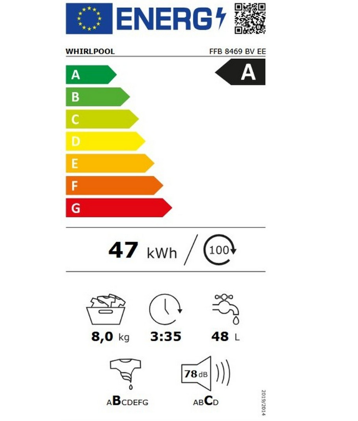 Το πλυντήριο ρούχων εμπρόσθιας φόρτωσης Whirlpool FFB 8469 BV EE είναι σχεδιασμένο για αποδοτική και οικονομική καθημερινή χρήση, συνδυάζοντας έξυπνες τεχνολογίες φροντίδας ρούχων με χαμηλή κατανάλωση ενέργειας και νερού.