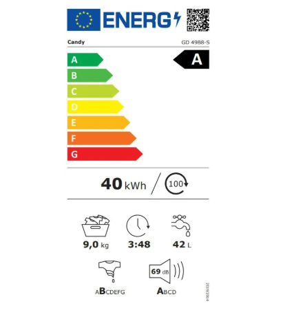 Κατανάλωση ενέργειας 40 kWh ανά 100 κύκλους ECO 40-60