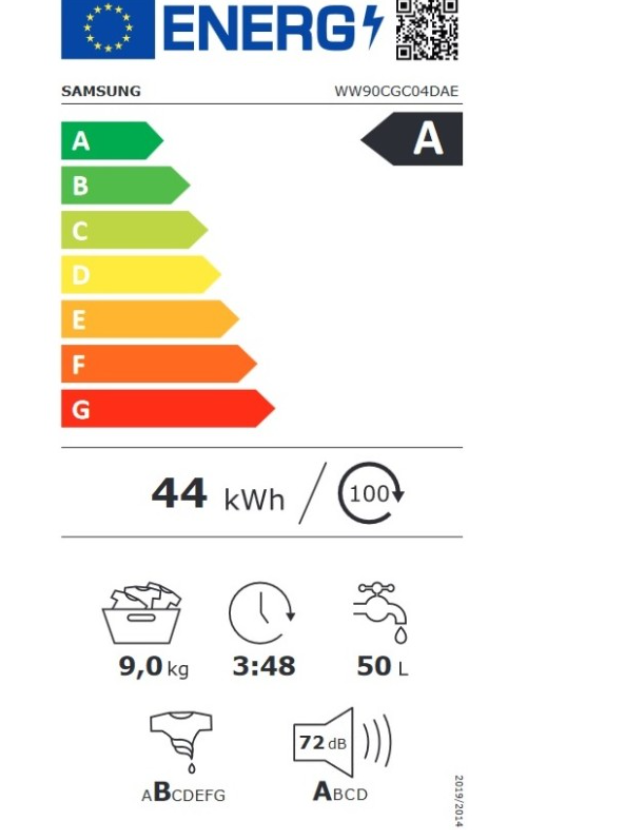 Κατανάλωση ενέργειας 44 kWh ανά 100 κύκλους