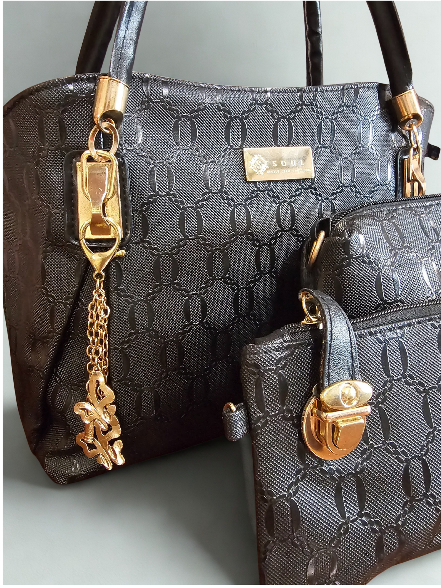SOUL | Γυναικεία Τσάντα Χειρός σε Μαύρο Χρώμα με Σετ Αξεσουάρ