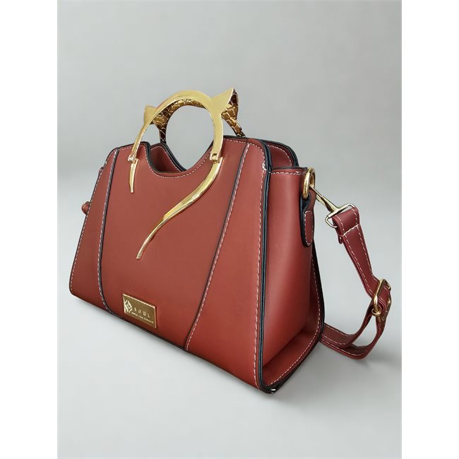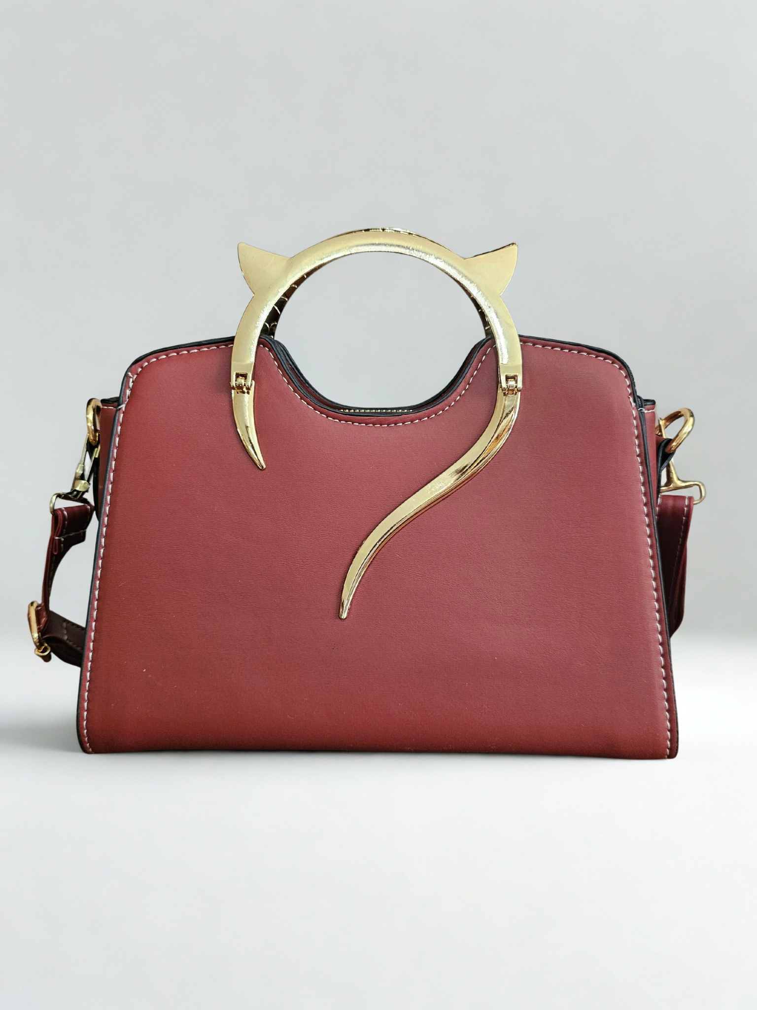 Soul | Γυναικεία Τσάντα Χειρός και Χιαστί Minou σε Κεραμιδί Χρώμα με Μεταλλική Χειρολαβή Γάτας