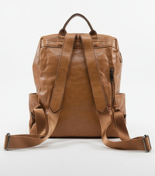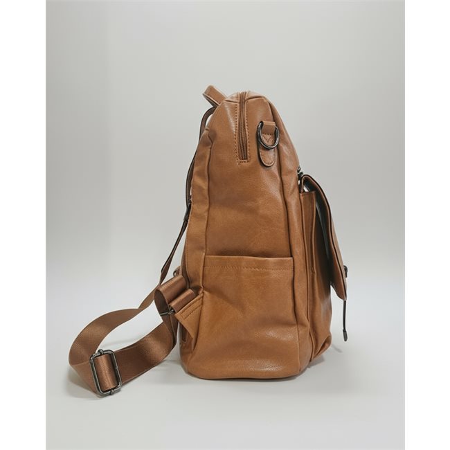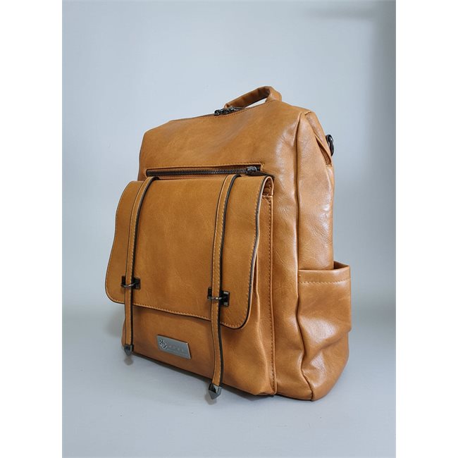 Οι εξωτερικές τσέπες προσφέρουν εύκολη πρόσβαση στα απαραίτητα, ενώ η μπροστινή τσέπη με καπάκι και διακοσμητικά λουράκια με ασημί λεπτομέρειες προσθέτει στυλ και πρακτικότητα.